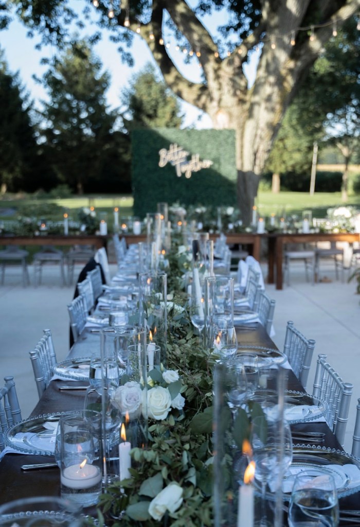 For your reception, we offer a stunning indoor event space featuring handmade tables crafted from the original barn boards. This intimate, rustic aesthetic is complemented by the option of two colors of chiavari chairs, as well as beautiful, customizable lighting to enhance the ambiance of your event. Whether you’re hosting a grand reception or a smaller, more intimate gathering, our indoor space will provide a beautiful backdrop for your celebration.